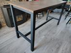 Industriële bartafel hoge eettafel mooi blad zonder schade. De 4 barstoelen kunnen erbij verkocht worden, maar deze zijn beschadigd door de kat. Afmetingen lengte 1,6m hoogte 0,9m breedte 0,6m zie ook