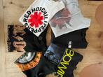 6 kledingstukken. Bands: red hot chili peppers ( t-shirt, pull: l; pink floyd, david bowie, guns&roses: allemaal m. Zgan, bijna niet gedragen.