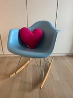 Mooie kinder schommelstoel in eames-stijl, met een lichtblauwe kuipzitting, houten rockers en metalen onderstel. Comfortabel, stevig en superleuk voor in de kinderkamer, speelhoek of zelfs als decorat