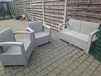Gebruikte tuinset, 1 stoel onderaan beetje kapot. Eens op te knappen met een wasbeurt maar kunnen bog een rondje mee kussentjes mogen erbij ( kleine vlekjes) 0470268786