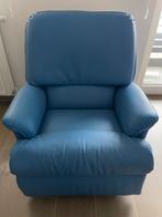 Fauteuil relax en similicuir en parfait état. Il y a juste quelques traces de frottement à l’arrière (voir photos). Fauteuil robuste, de très très bonne qualité. Il y en a 4. L’un des fauteuil est lég