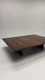 Strakke, lage salontafel in wengéhout met bamboe fineer tafelblad. Het royale blad met zwevende look en houtpatroon geeft een warme, japanse look aan je interieur. Exclusief statement piece voor een r