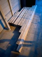 10 massief droge eiken balken van verschillende lengtes in redelijke staat. De langste heeft wel 3 gaten waar bouten hebben gezete