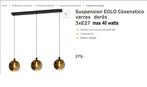 Très beau lustre eglo cesenatico noir à suspendre constitué de trois globes sphériques en verre doré. 3X e27 led 7,3 watts. Longue